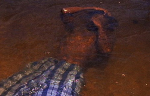 So the second realm then, is the realm of the audience. There we are, together. Our own little tribe of folks. In a ritualized setting, a darkened theater. The silent hush of the audience. The click and whir of the projector. Since I saw River Rites at REDCAT, an arts venue in downtown Los Angeles whose audience is made up to a large degree by Cal Arts students, faculty, alumni, and the people who love them, we truly are a clan of familiars. We all know the ritual, and partaking in that ritual is partially why we go to the cinema. In addition to the pleasure of looking at flickering images, going to the cinema is about reinforcing a sense of community, a sense of personal identity, the reification and expansion of our world view. This is us, this is our people, this is what we’re into. That’s how ritual functions in all cultures to some degree; spirit possession is not just about spirit possession, it’s also about community identity.