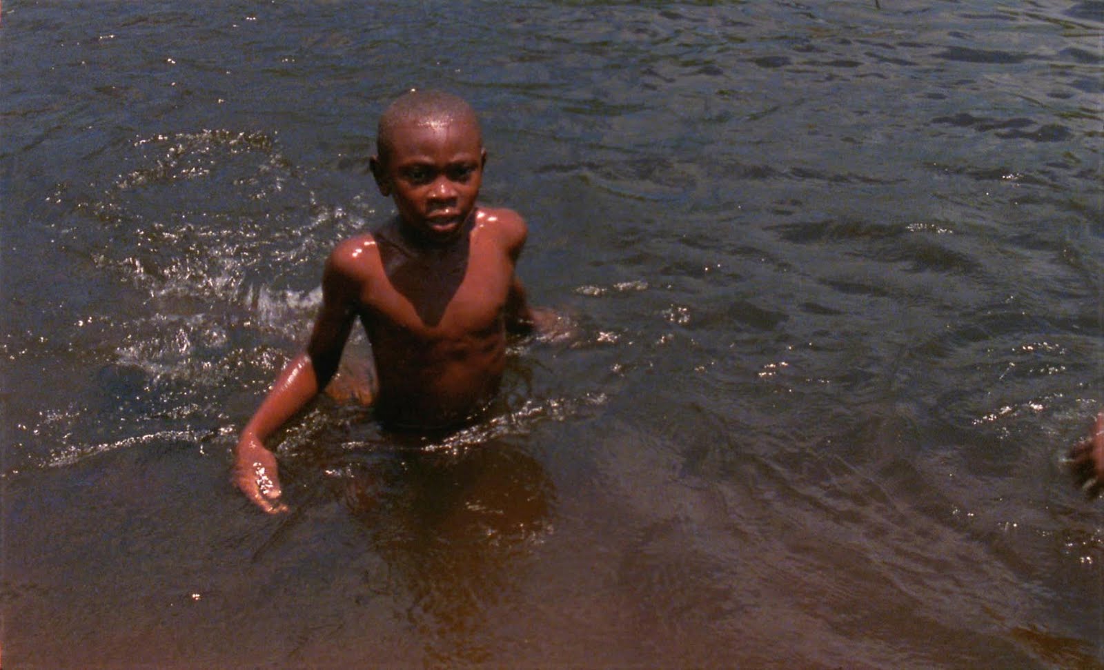 River Rites exposes three realms of existence, and filmmaker Ben Russell leads us through all of them. The first realm is the world of the subjects of the film, a small community of Saramaccan animists at a sacred river in Northern Suriname. We, the audience, witness a world that is lushly sensorial. The sound of rushing water through the reeds conjures its coolness; our toes almost squish the red clay, almost feel the grit of the stone where the water drips. But as soon as an inhabitant of this world appears, we know this place does not belong to us, and we remember that we are not really there. The first subject that we see is a shirtless Saramaccan man in his early thirties, his solemn expression surprising for someone found frolicking in a river on a warm day. A toddler enters his arms and they both turn to look directly into the eye of the camera, our eye. The expression implied by his gaze is ultimately unknowable, just as the gaze of every “other” is – maybe even the one we see in the mirror. But the stare of this man is so intense and serious. Is it a confrontation? An accusation? Suspicion? Whatever it is, it doesn’t suggest that he is gazing at someone who is a member of his “tribe”. All of this underscores the ultimate “otherness” not only of the man and the child that he holds, but also of the space they inhabit. We, most likely a Western urban audience who appreciates experimental ethnographic filmmaking, are not of his world. We are just visiting, watching, and we both know it. The Saramaccan gazes through the camera, to us, to our world, where we sit in the dark.